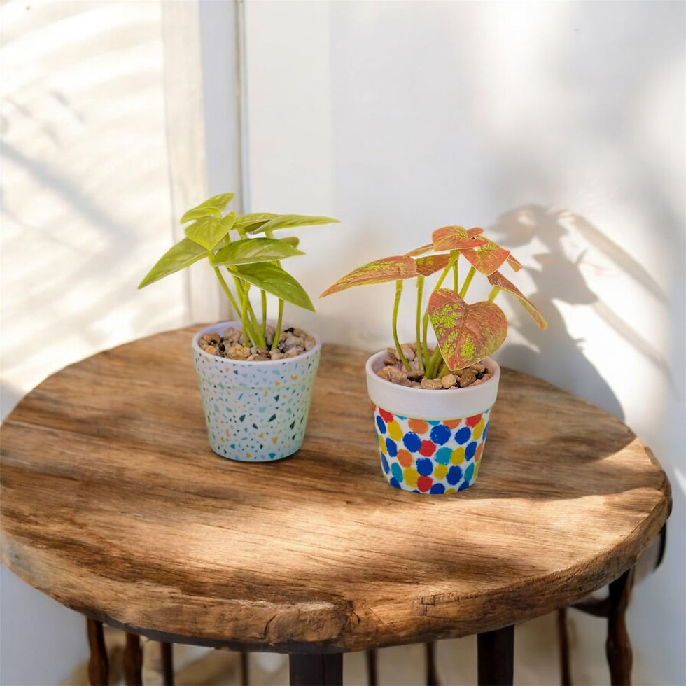 Set of Two Artificial Plants in Colorful Decorative Pots